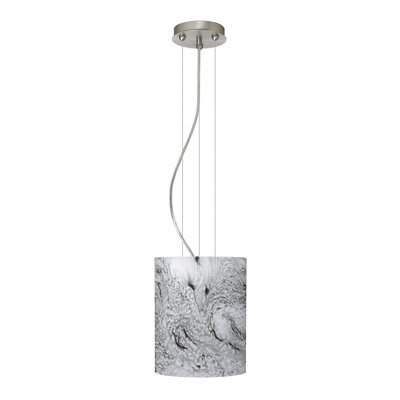 Tamburo Pendant Size / Glass Shade: 9.875" H x 7.875" W x 7.875" D / Marble Grigio, Finish: Satin Nickel